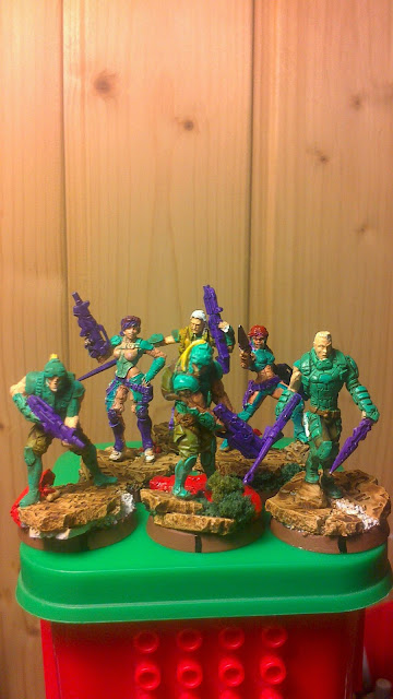 Estos son unos unos proxis para tantas cosas que creo que me he pasado un poco haciendo tantos, pero no me he podido resistir. Me falta poner las cabezas a casi todos y ponerlos sellos y detallitos, que es lo que da más vidilla a las minis. A lo mejor los acabare usando para usar en deadzone o algo parecido, hasta que caigan los enforcers o encuentre alguien que le haga ilusión jugar y empezar un poco con eso. Aparte tengo las reglas de dreadball bastante por la mano y convenciendo un poco a los colegas que es como el quidditch he hecho bastantes demos, así que con eso estoy bastante contento.